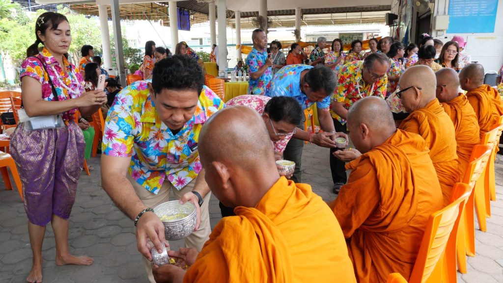 ชาวบ้านชุมชนชุมสาย-พัทยา จัดพิธีทำบุญตักบาตร สืบสานงานประเพณีสงกรานต์ ประจำปี 2568