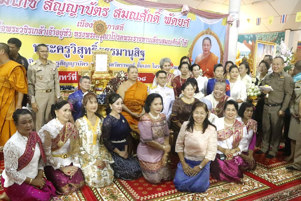 สัตหีบ พิธีสมโภชสัญญาบัตร สมณศักดิ์ พัดยศและผ้าไตรพระราชทาน พระครูวิสุทธิ์ธรรมานุสิฐ เจ้าอาวาสวัดราษฎร์ เป็นชั้นเอก