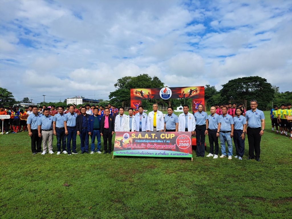 เมื่อวันที่ 18 กรกฎาคม. 2568. เวลา 9.00 น.ณ สนามฟุตบอลโรงเรียนเก้าเลี้ยววิทยา. อำเภอเก้าเลี้ยว จังหวัดนครสวรรค์ มีพิธีเปิดการแข่งขัน ฟุตบอล 7 คน ส.บ.ม.ท. คัพ ครั้งที่ 1 รุ่นอายุไม่เกิน 17 ปี โดยได้รับเกียรติจาก พลตำรวจเอก สมศักดิ์ จันทะพิงค์ นายกองค์การบริหารส่วนจังหวัดนครสวรรค์เป็นประธานในพิธีเปิด มีคณะกรรมการ จัดการแข่งขันประกอบด้วย ผอ.วิฑูรย์ งามนิธิจารุเมธี ประธานดำเนินการจัดการแข่งขัน ผอ. บัญชา วงศ์ซื่อ ผอ.ก้านตอง เส็งเอียม ผอ.วิมล ปรักมาตย์ และ ดร.ณรินทร์ ชำนาญดู คณะกรรมการดำเนินการแข่งขัน พร้อมด้วยคณะผู้บริหารโรงเรียนมัธยมศึกษาจังหวัดนครสวรรค์. ซึ่งเป็น คณะทำงาน ส.บ.ม.ท. ประจำจังหวัดนครสวรรค์ หลังจากประธานในพิธีเปิดเดินทางมาถึง นายวิฑูรย์ งามนิธิจารุเมธี ผู้อำนวยการ โรงเรียนสตรีนครสวรรค์ ประธานคณะกรรมการจัดการแข่งขันกล่าวรายงาน ต่อจากนั้นประธานในพิธีกล่าวเปิดการแข่งขัน ต่อมาเป็นการแข่งขัน ฟุตบอลคู่เปิดสนาม ระหว่างทีมโรงเรียนวังเมืองชนประสิทธิ์วิทยา กับโรงเรียนบึงบอระเพ็ดวิทยา