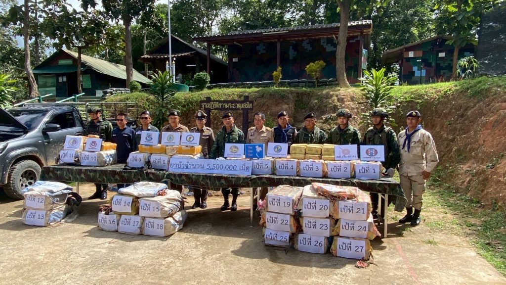ทหารกองกำลังผาแดง หน่วยเฉพาะกิจไชยานุภาพ ได้รับแจ้งจากแหล่งข่าว ว่าจะมีการลักลอบลำเลียงยาเสพติดเข้ามาในพื้นที่ หน่วยจึงจัดกำลัง กองร้อยทหารม้าที่ 1 หน่วยเฉพาะกิจไชยานุภาพ จำนวน 1 ชุดปฏิบัติการ ทำการตั้งจุดตรวจชั่วคราว เพื่อป้องกันและสกัดกั้นการกระทำผิดตามพระราชบัญญัติยาเสพติด บริเวณบ้านหัวนา (บ้านบริวาร บ้านเปียงหลวง) ตำบลเปียงหลวง อำเภอเวียงแหง จังหวัดเชียงใหม่ ต่อมาเมื่อ เวลา 21.45 นาฬิกา ได้ตรวจพบ รถยนต์ (กระบะ) ยี่ห้อ โตโยต้า รุ่น ไฮลักซ์ รีโว่ สีดำ ไม่ติดแผ่นป้ายทะเบียน ขับมาตามเส้นทางดังกล่าว หน่วยจึงได้แสดงตัวเพื่อขอทำการตรวจค้น แต่รถยนต์คันดังกล่าวได้หยุดรถก่อนถึงจุดตรวจ ประมาณ 200 เมตร จากนั้นชายต้องสงสัย จำนวน 3 ราย ได้ลงจากรถ และอาศัยความชำนาญในพื้นที่วิ่งหลบหนีไป จากการตรวจสอบรถยนต์คันดังกล่าว พบกระสอบดัดแปลงเป็นเป้สะพายหลัง จำนวน 30 กระสอบ วางอยู่ท้ายกระบะรถยนต์ ภายในบรรจุยาเสพติดให้โทษประเภท 1 (ยาบ้า)กระสอบละ 200,000 เม็ด จำนวน 25 กระสอบ รวมประมาณ 5,000,000 เม็ด และกระสอบละ 100,000 เม็ด รวมประมาณ 500,000 เม็ด รวมทั้งสิ้นประมาณ 5,500,000 เม็ด เมื่อวันที่ 10 สิงหาคา 2568 เวลา 10.30 นาฬิกา พลตรี กิดากร จันทรา ผู้บัญชาการกองกำลังผาเมือง/ผู้อำนวยการศูนย์ปฏิบัติการป้องกันและปราบปรามยาเสพติดกองกำลังผาเมือง มอบหมายให้ พันเอก เดชาธร สายหยุด รองผู้บังคับหน่วยเฉพาะกิจไชยานุภาพ เป็นผู้แทน ร่วมกับหน่วยงานที่เกี่ยวข้องลงพื้นที่ เพื่อตรวจสอบการตรวจยึดยาเสพติดดังกล่าว และได้นำของกลางส่งให้กับสถานีตำรวจภูธรเวียงแหง เพื่อดำเนินการตามกฎหมายต่อไป