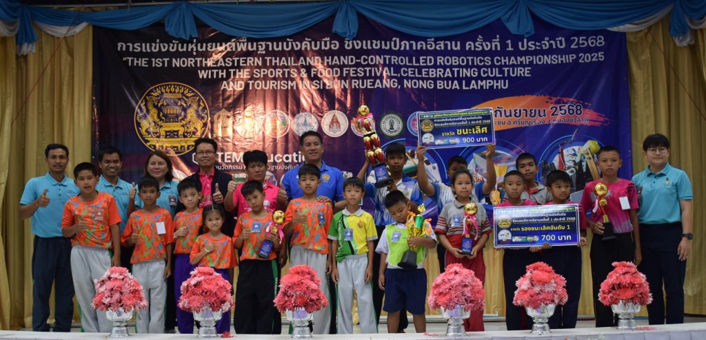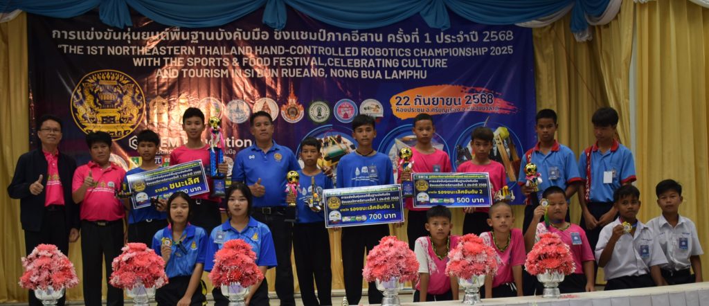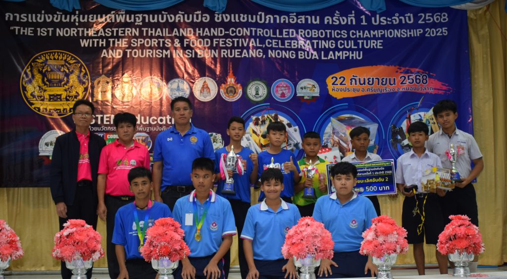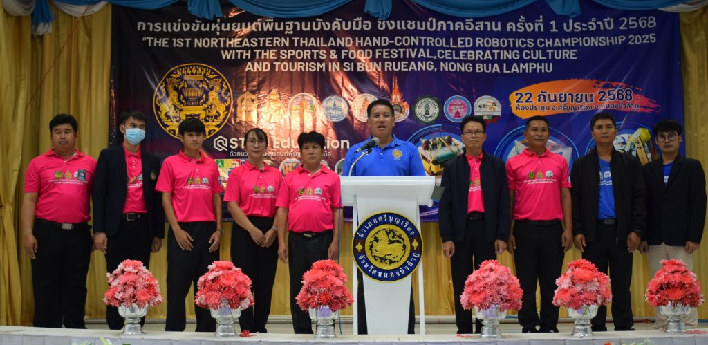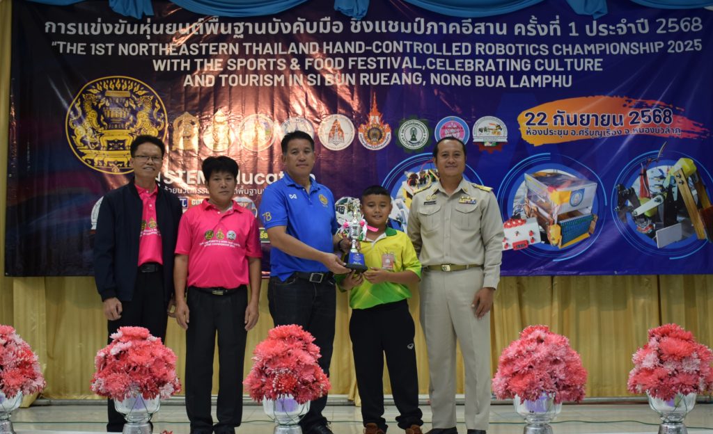 การแข่งขันหุ่นยนต์พื้นฐานบังคับมือ ชิงแชมป์ภาคอีสาน ครั้งที่ 1 ประจำปี 2568 งานเทศกาลกีฬาและอาหารส่งเสริมการท่องเที่ยวอำเภอศรีบุญเรือง ขณะที่นายอำเภอศรีบุญเรืองพร้อมหนุนจัดชิงแชมป์ประเทศไทย