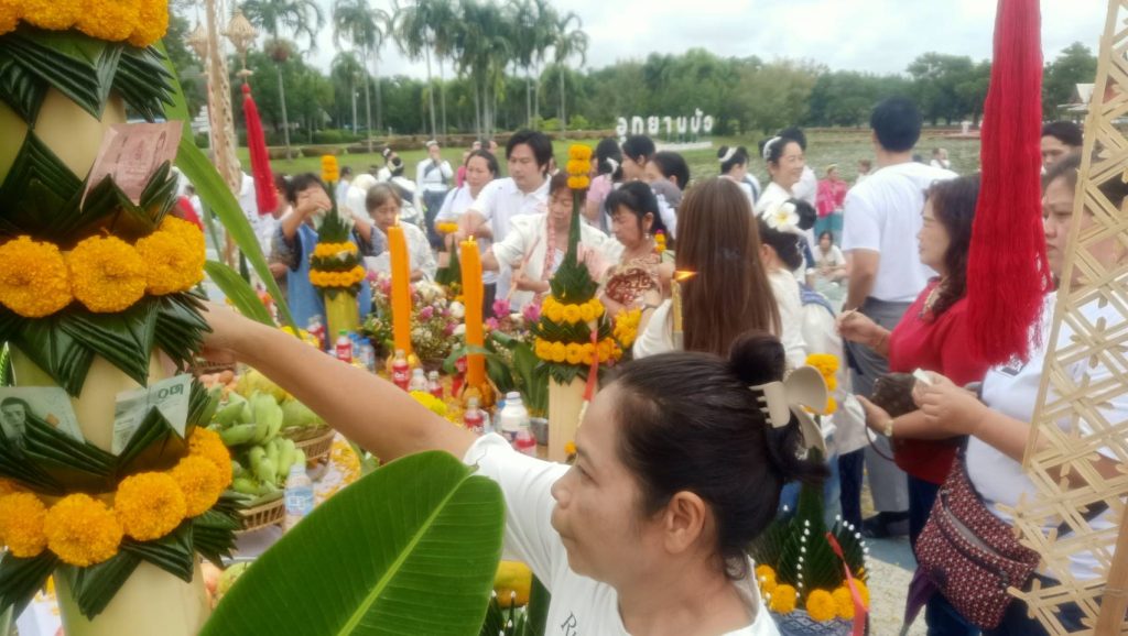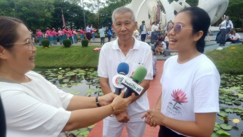 ผู้จัดการอุทยานบัวฯ กล่าวว่า ตั้งแต่ก่อสร้างองค์ปู่เสร็จก็มีพิธีบวงสรวงครั้งเดียว จึงหารือกับชุมชนและได้ข้อสรุปว่าจะต้องทำพิธีบวงสรวงขึ้น ทางมหาวิทยาลัยก็คิดว่าต่อไปนี้จะทำทุกปี ด้าน ดร.อานนท์ เอื้อตระกูล สถาบันอานนท์ไบโอเทค อุทยานบัวเฉลิมพระเกียรติ