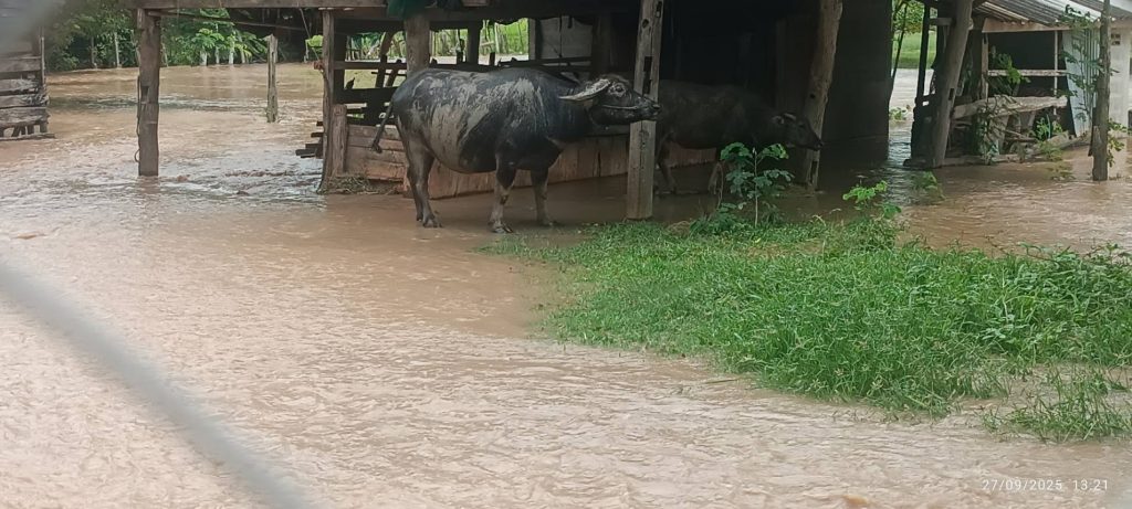เมื่อวันที่ 27 ก.ย.2568 ที่ จ.ลำปาง ผู้สื่อข่าวรายงานว่า หลังจากที่เกิดฝนตกหนักในพ้นที่บนดอยขุนตาล .ก้างฉัตร ในช่วงตั้งแต่ช่วงเที่ยงคืนวันที่ 26 ก.ย.ที่ผ่านมาถึงช่วงเช้าของวันที่ 27 ก.ย.นี้ ทำให้เกิดน้ำป่าไหลหลากล้นตลิ่ง อ่างเก็บน้ำ ลำห้วยแม่ตาล ไหลเอ่อท่วมพื้นที่การเกษตรและบ้านเรือนชาวบ้านที่อยู่ในริมลำน้ำแม่ตาล ในเขต อ.ห้างฉัตร