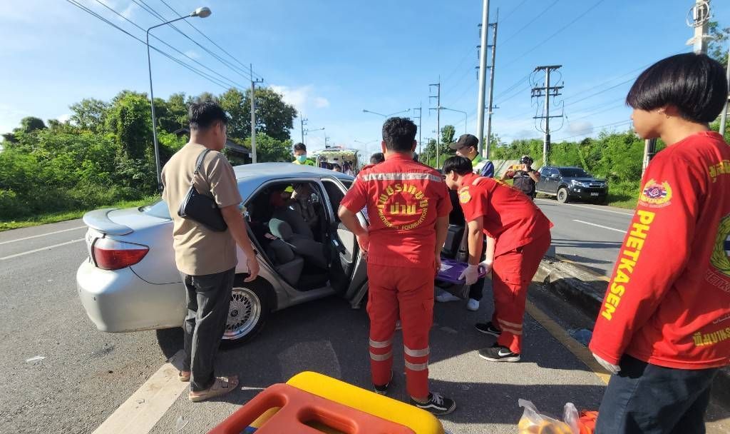 น.ส.พร (นามสมมุติสงวนนามสกุล) อายุ 34 ปี หมู่ 3 ต.น้ำปั้ว อ.เวียงสา จ.น่าน ได้รับบาดเจ็บสาหัสและติดอยู่ภายในรถ