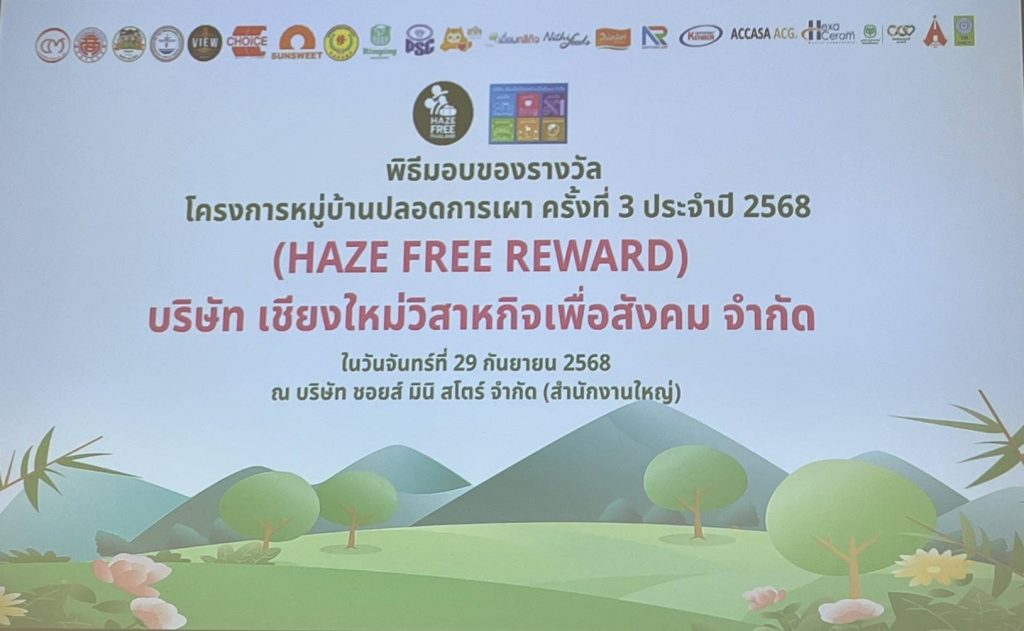 นายพันธุ์ศักดิ์ คำใส กำนันตำบลแม่โป่งพร้อมผู้ใหญ่บ้านทุกหมู่ในตำบลแม่โป่ง เข้ารับรางวัลหมู่บ้านปลอดการเผา ประจำปี 2568 ตาโครงการ “หมู่บ้านปลอดการเผา ครั้งที่ 3 (HAZE FREE REWARD)”ปีนี้มีหมู่บ้านสมัครเข้าร่วมโครงการ