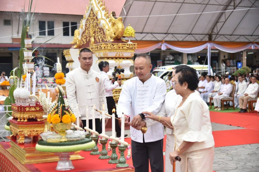 โดยมี พล.ต.ต.ภูมิปัญญ์ญา นวตระกูลพิสุทธิ์ ผบก.ภ.จว.ลำปาง ในฐานะประธานคณะทำงาน ร่วมเป็นประธานฝ่ายฆารวาส พร้อมด้วยน.ส.ตวงรัตน์ โล่ห์สุนทร นายก อบจ.ลำปาง นายปุณณสิน มณีนันท์ นายกเทศมนตรีนครลำปาง หัวหน้าส่วนราชการ พร้อมด้วยตำรวจในสังกัด กก.ภ.จว.ลำปางและประชาชนเข้าร่วมพิธี