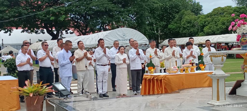 เมื่อเวลา 09.00 น.วันที่ 30 ก.ย.2568 ที่ จ.ลำปาง ผู้สื่อข่าวรายงานว่า ที่ศาลหลักเมือง หน้าตลาดสดเทศบาลนครลำปาง มีการประกอบพิธีสมโภชมณฑปพระพุทธนิรโรคันตรายชัยวัฒน์จตุรทิศ (หลวงพ่อดำ) และบวงสรวงศาลหลักเมืองลำปาง