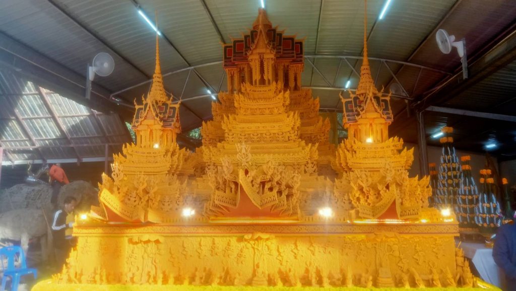 อบต.ขมิ้น อ.เมืองสกลนคร ร่วมกับวัดสะพานศรี ชุมชนวัดเหนือ ชุมชนวัดสะพานคำ ชุมชนหนองสนม ถวายองค์ปราสาทผึ้งแก่สิ่งศักดิ์ก่อนแห่เข้าไปตั้งโชว์ความงดงามอลังการ์ที่บริเวณศูนย์ราชการ พร้อมแห่ในวันที่ 6 ตุลาคมนี้