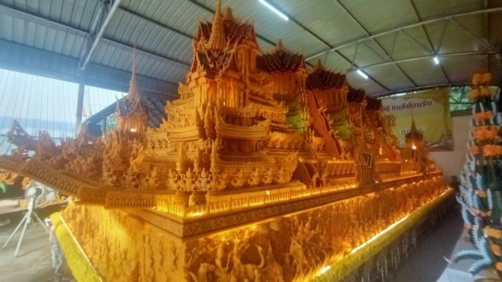 อบต.ขมิ้น อ.เมืองสกลนคร ร่วมกับวัดสะพานศรี ชุมชนวัดเหนือ ชุมชนวัดสะพานคำ ชุมชนหนองสนม ถวายองค์ปราสาทผึ้งแก่สิ่งศักดิ์ก่อนแห่เข้าไปตั้งโชว์ความงดงามอลังการ์ที่บริเวณศูนย์ราชการ พร้อมแห่ในวันที่ 6 ตุลาคมนี้