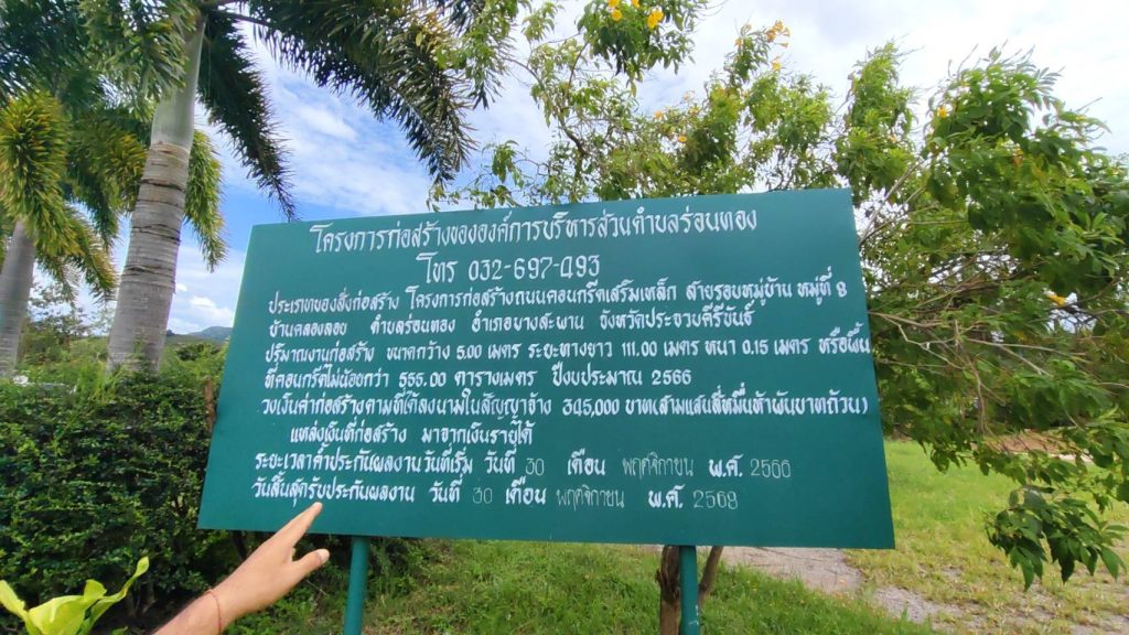 จากการตรวจสอบเบื้องต้น พบว่าโครงการดังกล่าวเป็นโครงการขององค์การบริหารส่วนตำบลร่อนทอง ใช้งบประมาณกว่า 345,000 บาท ในการก่อสร้างถนนคอนกรีตเสริมเหล็ก ความยาว 111.00 เมตร โดยเริ่มดำเนินการเมื่อวันที่ 30 พฤศจิกายน 2566 และมีกำหนดสิ้นสุดสัญญาในวันที่ 30 พฤศจิกายน 2568