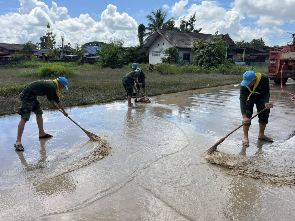 เนื่องจากได้รับผลกระทบจากเหตุอุทกภัยน้ำไหลหลากเมื่อวันที่ 27 ก.ย. 2568 ที่ผ่านมา โดยในขณะนี้น้ำได้ลดกลับเข้าสู่ภาวะปกติแล้ว ทั้งนี้เพื่อเป็นการฟื้นฟูทำความสะอาด พื้นที่บริเวณโดยรอบวัดให้กลับมาสะอาดเหมือนเดิม ในการนี้ได้รับการขอบคุณเป็นที่ประทับใจต่อประชาชนในพื้นที่เป็นอย่างดี ดังคำว่า“ ทหารเป็นที่พึ่งของประชาชนในทุกโอกาส”จิตอาสาพระราชทานเราทำความดีด้วยหัวใจ.