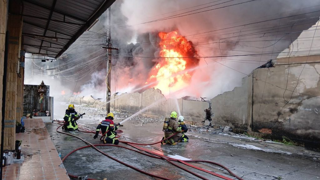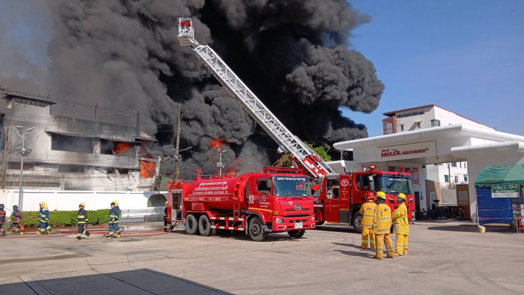 ยังควบคุมเพลิงไม่ได้ เนื่องจากจุดเพลิงเป็นจุดเก็บน้ำมันเครื่องนับหมื่นลิตร