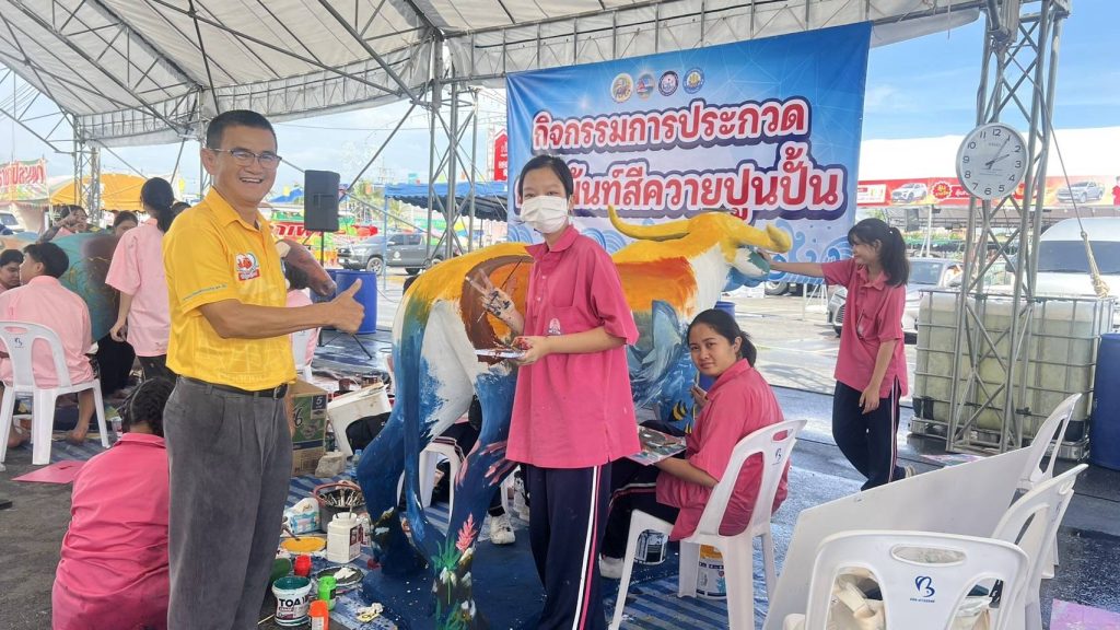 ได้ให้นักเรียนระดับชั้นประถมถึงมัธยมในพื้นที่จังหวัดชลบุรีและพื้นที่ใกล้เคียงที่ให้ความสนใจในงานศิลปะได้มามีส่วนร่วมในการเพ้นท์สีควายปูนจำนวน 12 ตัวและมีการประกวดวาดภาพระบายสีโดยควายปูนติดทั้ง 12 ตัวที่มีการเพ้นท์สีเสร็จเรียบร้อยจะนำไปตั้งไว้ที่จุดชมวิวบริเวณชายทะเลเทศบาลเมืองชลบุรีเพื่อเป็นสัญลักษณ์เป็นแลนด์มาร์กจุดนัดพบ