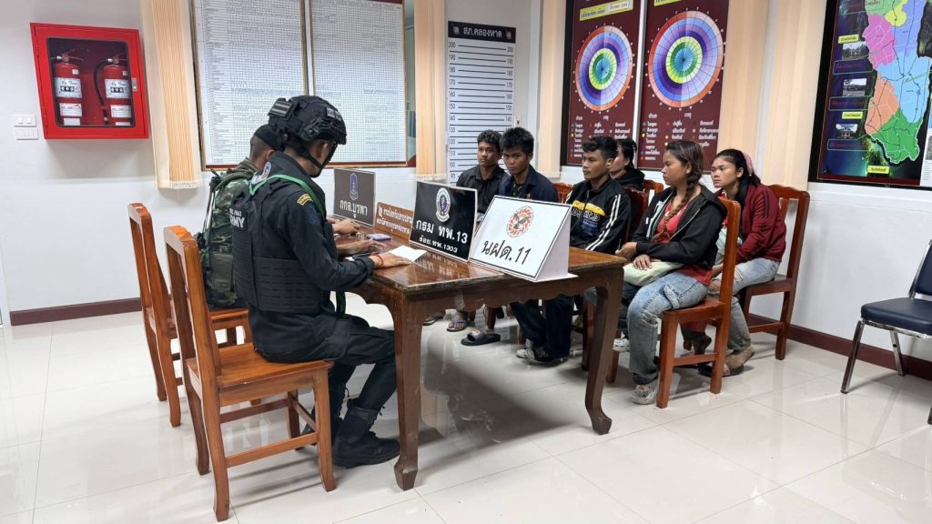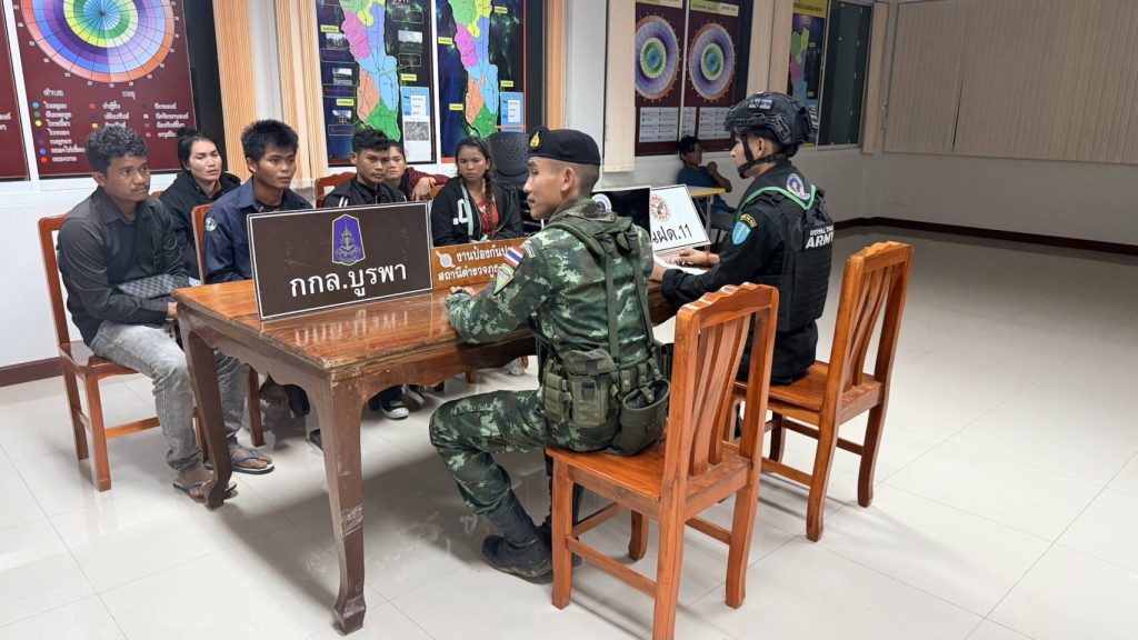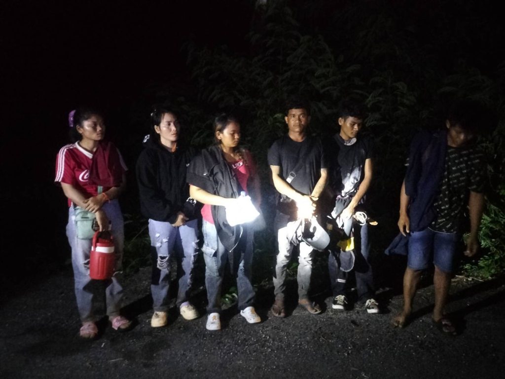 เดินเท้าออกมาจากชายป่า จนท.จึงเรียกให้หยุดเพื่อตรวจสอบพบเป็นชาวกัมพูชา จำนวน 6 คน เป็นชาย 3 หญิง 3 ทราบชื่อว่า 1/ นาย ตัน โต อายุ 30 ปี มาจาก จ.เสียมเรียบ 2/ นาย ชัย ลี อายุ 27 ปี จ.บันเตียเมียนเจย 3/ นาย เรียม ศาส อายุ 24 ปี จ.บันเตียเมียงเจย 4/ นาง นวม เชือบ อายุ 29 ปี จ.เสียมเรียบ 5/ นาง พร ศาส อายุ 28 ปี จ.บันเตียเมียนเจย 6/ นาง สารอน ไฮ อายุ 26 ปี จ.บัญเตียเมียนเจย