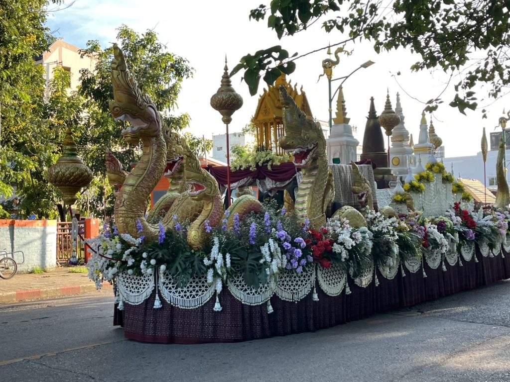 ได้จัดให้มีขบวนแห่เครื่องสักการะ พิธีบวงสรวงและรำบูชาพญานาค โดยมีนายสมภพ สมิตะสิริ ผู้ว่าราชการจังหวัดหนองคาย เป็นประธานในพิธีฯ มีนางรำทุกเพศทุกวัยจากชุมชนต่าง ๆ ในเขตเทศบาลเมืองหนองคาย ที่มีความเชื่อและศรัทธาต่อพญานาค จำนวนกว่า 1,000 คน แต่งตัวด้วยชุดผ้าพื้นเมืองของจังหวัดหนองคาย เข้าร่วมพิธีบวงสรวงและรำบูชาพญานาค มี พิ้งกี้ สาวิกา ไชยเดช ดารานักแสดง,กระเต็น กุลปริยา ฆ้อนทอง นางสาวไทย หนองคาย 2567 และแคท ชัญญธิดา มะติยาภักดิ์ มิสแกรนด์หนองคาย 2568 มาร่วมพิธีบวงสรวงและรำบูชาพญานาคในครั้งนี้ด้วย