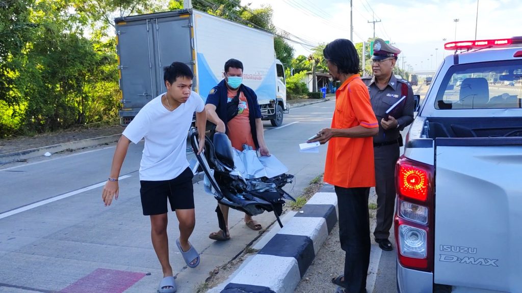 สอบถามนายสมศักดิ์ สุวรรณเบญจางค์ อายุ 43 ปี คนขับรถบรรทุก 6 ล้อ เล่าว่าก่อนเกิดเหตุได้ขับรถบรรทุกมาส่งสินค้าที่ห้างแม็คโคร สุพรรณบุรี กำลังยูเทิร์นกลับไป จ.พระนครศรีอยุธยา ระหว่างนั้นตนมองด้านซ้ายแล้วไม่มีเลย จึงเร่งเครื่องออกจากจุดยูเทิร์นมาตั้งลำหน้ารถตรงก็ได้ยินเสียงดังปุ้งอยู่สองครั้ง และรถตนกระเด็นข้ามฝั่งมาอยู่ทางนี้ พอหันไปดูอีกทีก็เจอรถตู้พลิกตะแคงแล้ว เลยเดินเข้าไปดูเจอคนขับรถนอนอยู่ข้างนอกตัวรถ ตอนที่เสียงดังตนก็ตกใจเพราะไม่รู้ว่าอะไรมันดัง เพราะตอนที่จะยูเทิร์นตนดูแล้วว่าไม่มีอะไรที่จะชนเรา ตอนแรกคิดว่าคันหลังที่ยูเทิร์น มาชนรถตน ตนใช้เส้นทางนี้ประจำอาทิตย์หนึ่ง 1-2 ครั้ง เพราะต้องมาส่งของที่แม็คโคร ตอนที่ขับเลี้ยวยูเทิร์น ก็มองว่าปลอดภัยแล้วถึงได้เลี้ยวยูเทิร์นมา เพราะตอนช่วงเช้ามันไม่ค่อยมีรถอยู่แล้ว ตนดูแล้วว่ามันไม่มีรถผมถึงได้ยูเทิร์นกลับมารู้สึกตกใจและเสียใจกับเหตุการณ์ที่เกิดขึ้น
