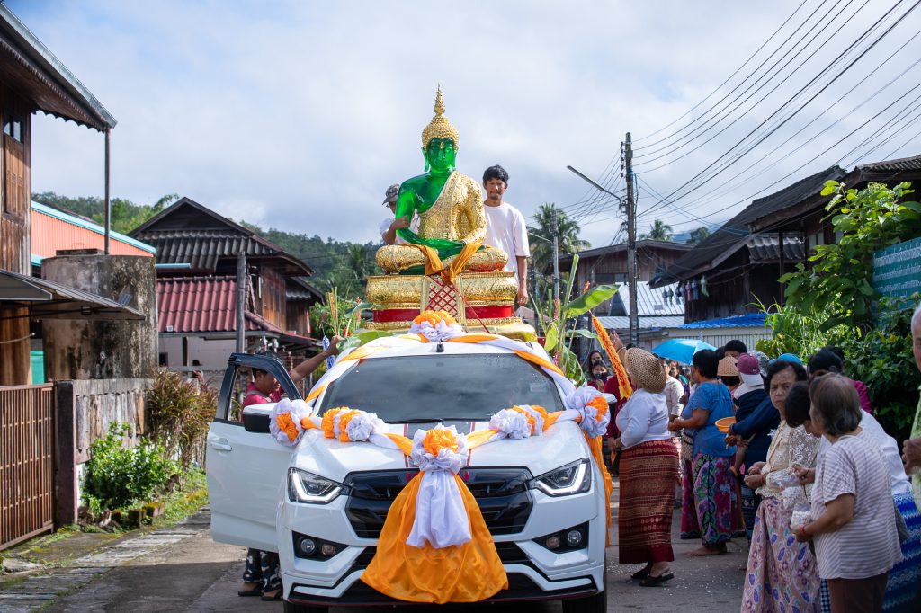 ทั้งนี้ภายในงาน ได้มีขบวนอัญเชิญพระแก้วมรกต กลองใหญ่ ฆ้องใหญ่ และระฆังใหญ่ ไปตามถนนรอบๆ หมู่บ้านเมืองปอน มีคณะศรัทธา ชาวบ้านร่วมอนุโมทนาบุญเป็นจำนวนมาก