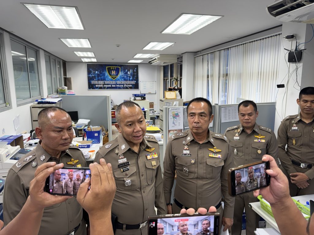 พล.ต.ท.กฤตธาพล ยี่สาคร ผบช.ภ.5, พล.ต.ต.ธวัชชัย พงษ์วิวัฒน์ชัย รอง ผบช.ถ.5 ,พล.ต.ต.ยุทธยา แก่นจันทร์ ผบก.ภ.จว.เชียงใหม่ เป็นประธานการแถลงข่าวผลการปฏิบัติคดีอาชญากรรมออนไลน์ ของ ศปอส.ภ.5 และ ภ.จว.เชียงใหม่