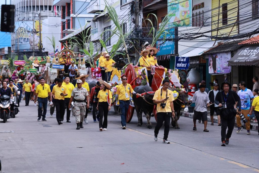 นายนริศ นิรามัยวงศ์ ผู้ว่าราชการจังหวัดชลบุรีได้สร้างสีสันและสืบสานประเพณีอันทรงคุณค่าด้วยการขึ้นเกวียนนำขบวนแห่เกวียนกัณฑ์ ในงานประเพณีวิ่งควายจังหวัดชลบุรี ครั้งที่ 154 ประจำปี 2568