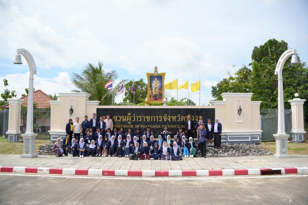 วันที่ 8 ตุลาคม 2568 ที่ศาลากลางจังหวัดพังงา นายไพรัตน์ เพชรยวน ผู้ว่าราชการจังหวัดพังงา ให้การต้อนรับคณะเยาวชนจากโครงการ “สานใจไทย สู่ใจใต้ รุ่นที่ 45” พื้นที่จังหวัดฝั่งทะเลอันดามัน ที่เดินทางมาเยี่ยมชมการทำงานของหน่วยงานภาครัฐในศาลากลางจังหวัดพังงา โดยมีนายบัญชา ธนูอินทร์ รองผู้ว่าราชการจังหวัดพังงา นายจักรกฤษณ์ ฝั่งชลจิตร์ ปลัดจังหวัดพังงา หัวหน้าส่วนราชการ และเจ้าหน้าที่ ร่วมให้การต้อนรับอย่างอบอุ่น