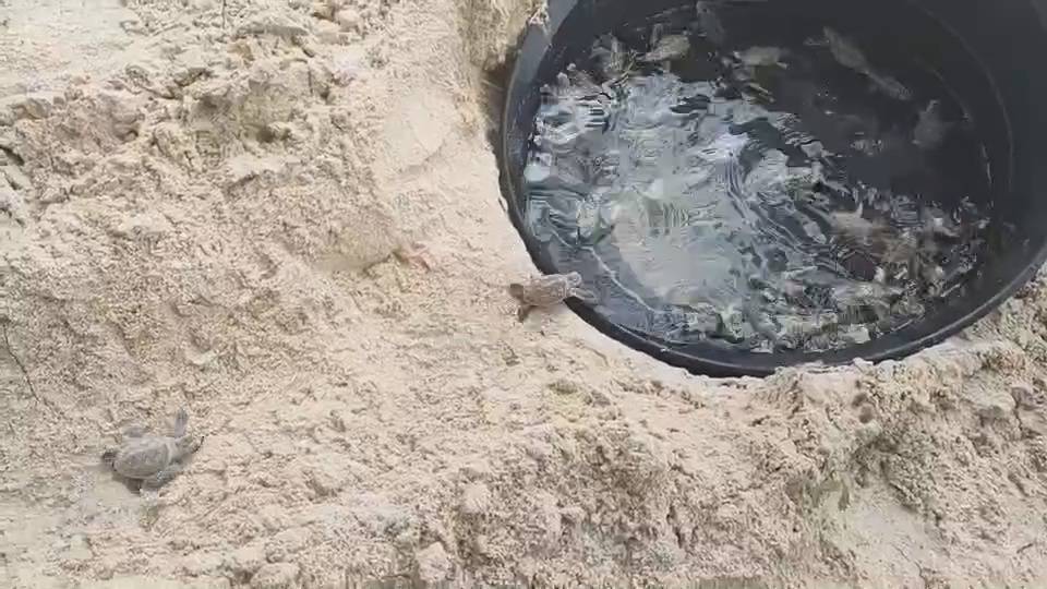 เจ้าหน้าที่จึงได้เตรียมนำลูกเต๋าไปอนุบาลโดยการนำกระมังใส่น้ำทะเลไปขุดหลุมในพื้นหาดทรายจำลองให้มีสภาพบรรยากาศคล้ายทะเลธรรมชาติจริง จากนั้นได้เซาะร่องพื้นทรายจากหลุมไข่เต่าให้เชื่อมต่อกับกระบะที่ใส่น้ำทะเล เพื่อบังคับให้ลูกเต่าได้คลานออกจากรังเดินมาตามร่องทรายที่ทำไว้แล้วลงไปอยู่ในกะละมังน้ำคล้ายกับลูกเต่ากำลังคลานลงทะเล