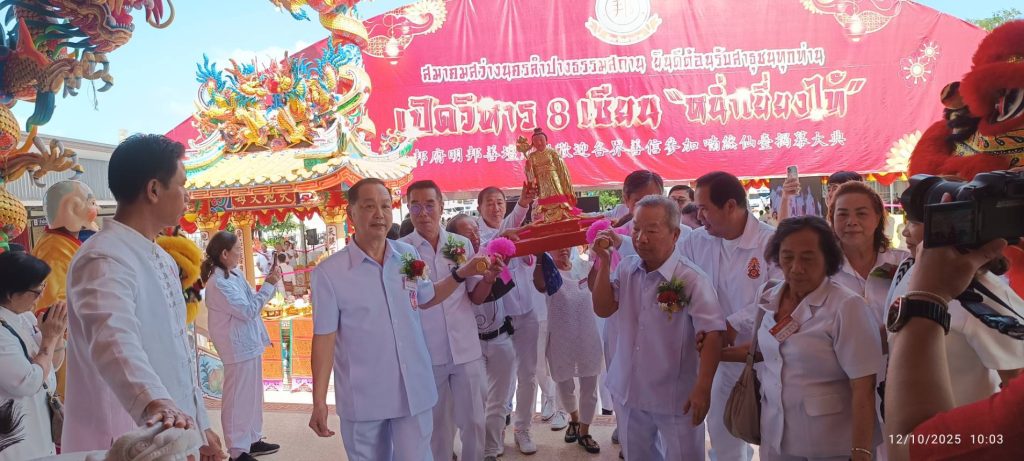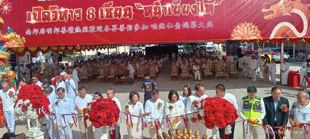 เมื่อเวลา 09.00 น.วันที่ 12 ต.ค.2568 ที่ จ.ลำปาง ผู้สื่อข่าวรายงานว่า ณ วิหารหน่ำเยี้ยงไท้ สมาคมสว่างนครลำปางธรรมสถาน อ.เมืองลำปาง มีพิธีมงคลเปิดแพรคลุมป้ายวิหาร 8 เซียน(วิหารหน่ำเยี้ยงไท้)และอัญเชิญเทวรูป และองค์โป๊ยเซียนโจวซือ ขึ้นประดิษฐาน ณ แท่นประทับแห่งแรกใน จ.ลำปาง