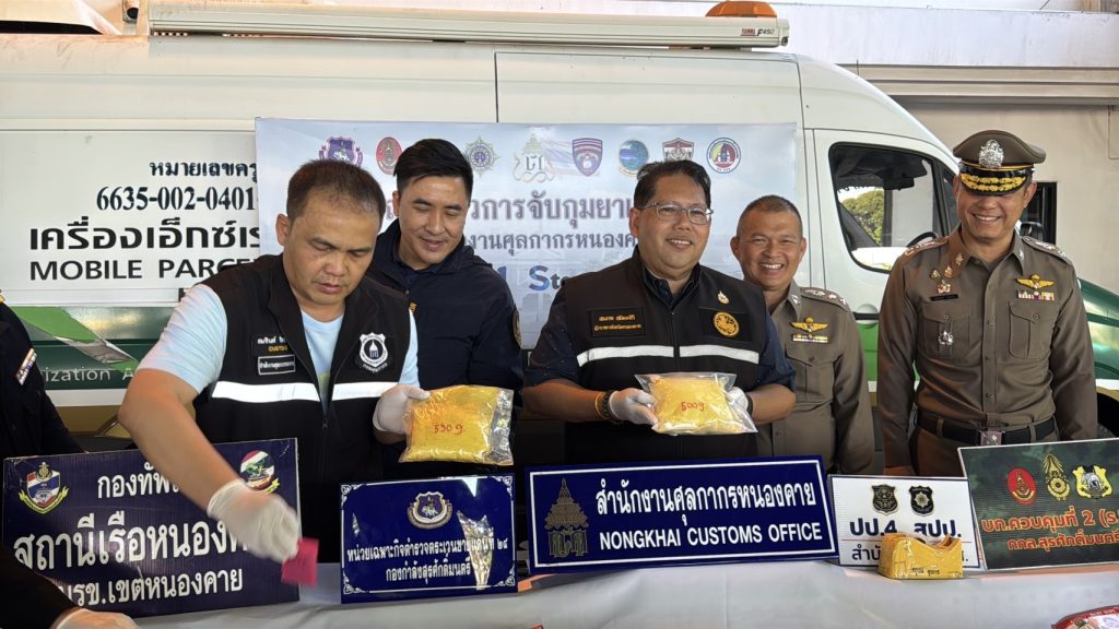 สืบเนื่องจากเมื่อ วันที่ 11 ตุลาคม 2568 เวลาประมาณ 19.00 น. เจ้าหน้าที่ด่านศุลกากรได้ตรวจค้นรถโดยสารระหว่างประเทศ เวียงจันทน์ – กรุงเทพฯ พบกระเป๋าเป้เดินทางสีดำ 1 ใบ อยู่บนชั้นวางของในรถ แต่ไม่พบเจ้าของ จึงนำกระเป๋าไปเอกซเรย์ พบของกินของใช้บรรจุอยู่ในกระเป๋า เมื่อเปิดตรวจสอบพบยายาบ้าและยาไอซ์ซุกซ่อนอยู่ในบรรจุภัณฑ์ต่าง ๆ รวมยาบ้านที่ตรวจยึดได้ครั้งนี้ 6,200 เม็ด ยาไอซ์ กว่า 1 กิโล