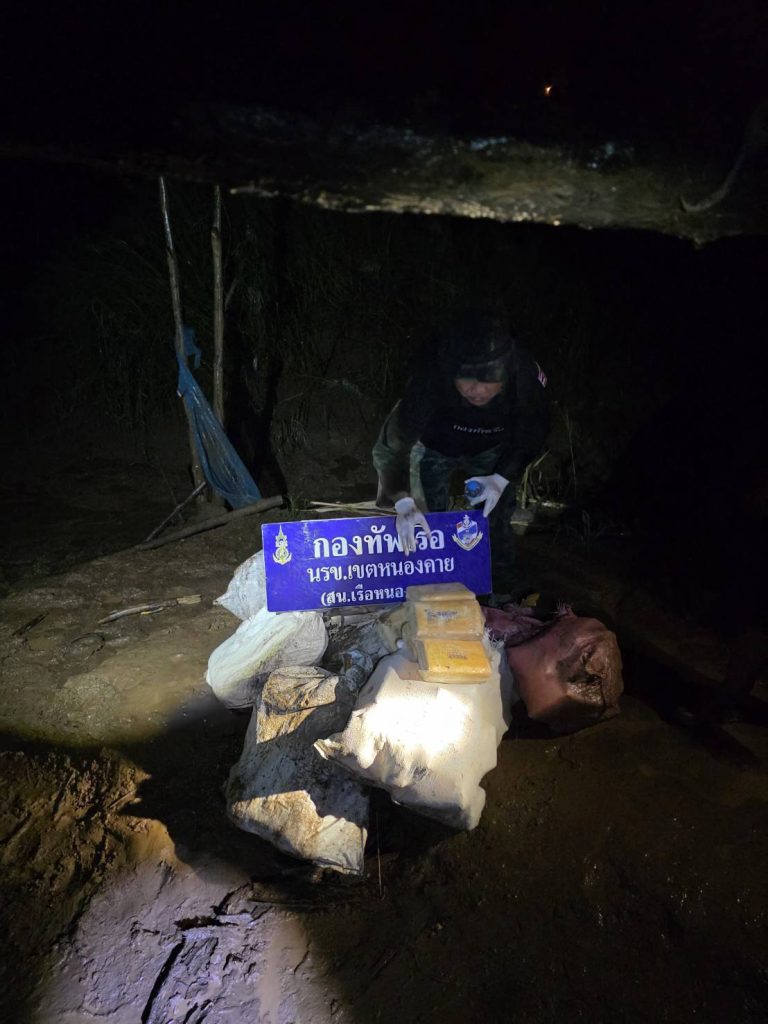 สืบเนื่องเมื่อวันที่ 13 ต.ค. 68 พล.ร.ต.ณรงค์ เอมดี ผบ.นรข. ได้รับแจ้งจากสายลับ จะมีการลักลอบนำสิ่งผิดกฎหมายจากประเทศเพื่อนบ้าน เข้ามาในราชอาณาจักรไทย บริเวณบ้านจอมแจ้ง ต.สีกาย อ.เมือง จ.หนองคาย จึงได้สั่งการ น.อ.วิศิษฐ์พงศ์ เจริญวิชยเดช ผบ.นรข.เขตหนองคาย จากนั้นได้สั่งการ น.ท.อริยะ ทองมั่น หน.สน.เรือหนองคาย จัดชุดปฏิบัติการข่าว/ชุด ลว. แบ่งกำลังออกเป็น 2 ชุด ชุ่มเฝ้าตรวจบริเวณวัดศรีสว่าง และท้ายเชื่อน บ.พร้าวใต้ กระทั่งเวลาประมาณ 21.30 น.