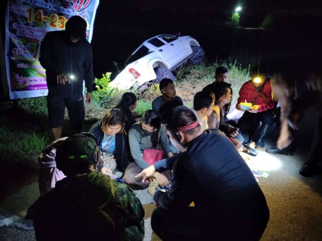 โดยระหว่างการหลบหนี รถกระบะได้ เสียหลักตกข้างทาง บริเวณบ้านสลองคอง ม.3 เมื่อเจ้าหน้าที่รุดเข้าตรวจสอบ บุคคลที่นั่งอยู่ภายในรถได้พากันวิ่งหลบหนี ออกจากรถทันทีอย่างรวดเร็ว เจ้าหน้าที่ได้ออกติดตามควบคุมตัวผู้ที่วิ่งหลบหนี พบว่าเป็นชาวกัมพูชาทั้งหมด 10 คน (ชาย 6 คน หญิง 3 คน และผู้ติดตามเยาวชนหญิง 1 คน) และจากการตรวจสอบรถยนต์คันดังกล่าวพบผู้ขับขี่รถยนต์เป็นชาวไทย ซึ่งถูกเจ้าหน้าที่ควบคุมตัวไว้ได้เช่นกัน โดยรับสารภาพได้รับจ้างขนข้ามแดนจริง