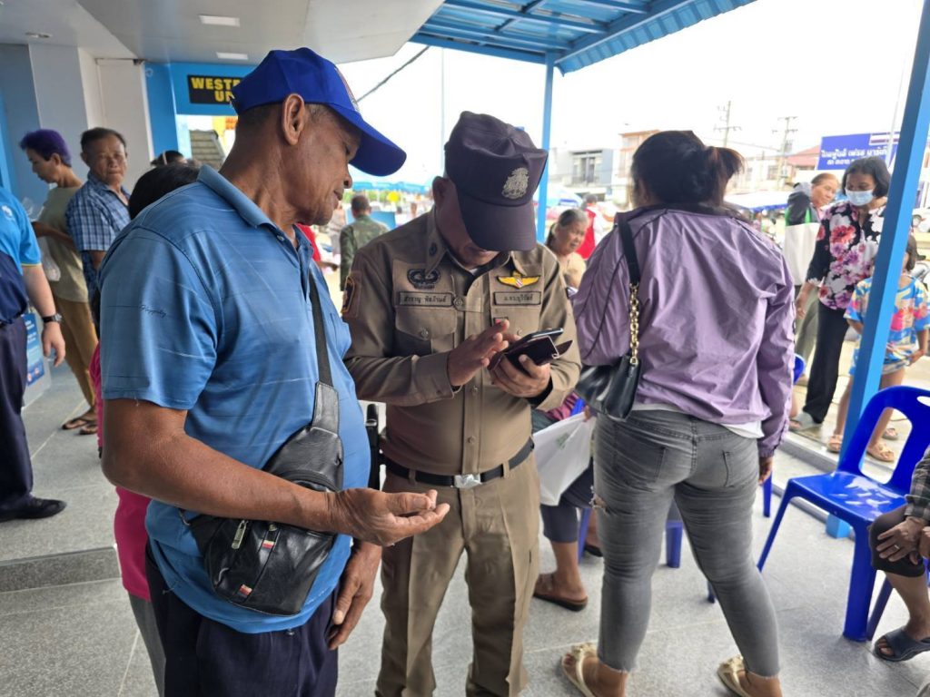 นายทองสา เพ็ชรรัก (เสื้อชมพู)อายุ 61 ปี ชาวบ้าน ต.สระบัว อ.แคนดง จ.บุรีรัมย์ อาชีพทำนา เล่าว่าโทรศัพท์ที่ตนเองใช้งานมาเกือบ 4 ปี แล้ว ได้ติดต่อสอบถามเจ้าหน้าที่ของธนาคารแล้วได้รับคำตอบว่าเป็นโทรศัพท์รุ่นเก่าจะต้องซื้อโทรศัพท์ใหม่จึงจะสามารถลงทะเบียนได้