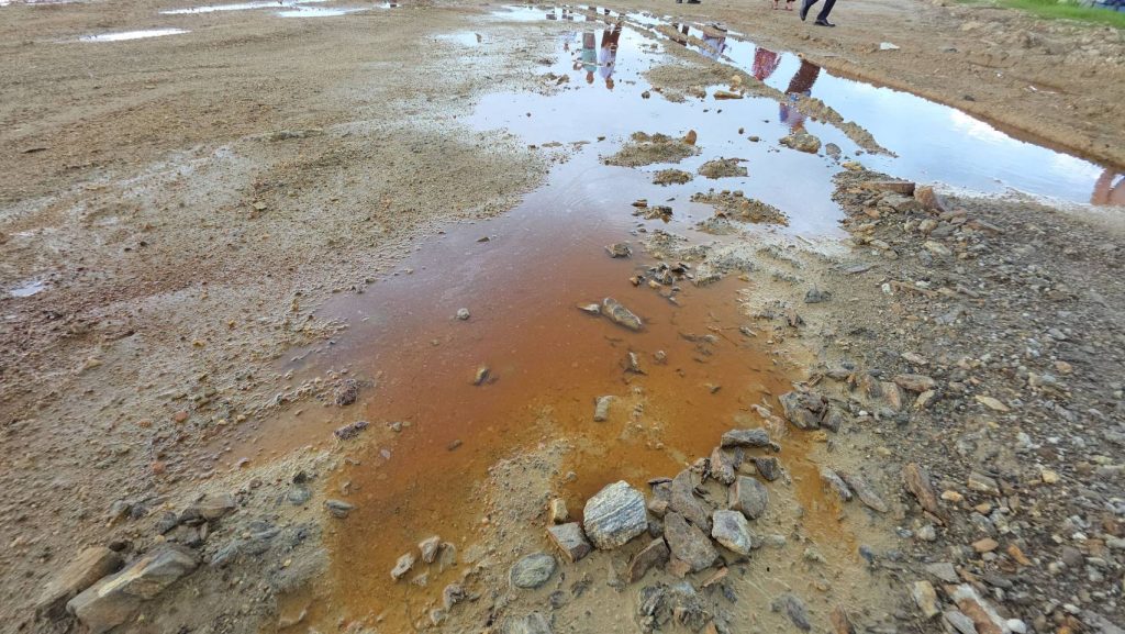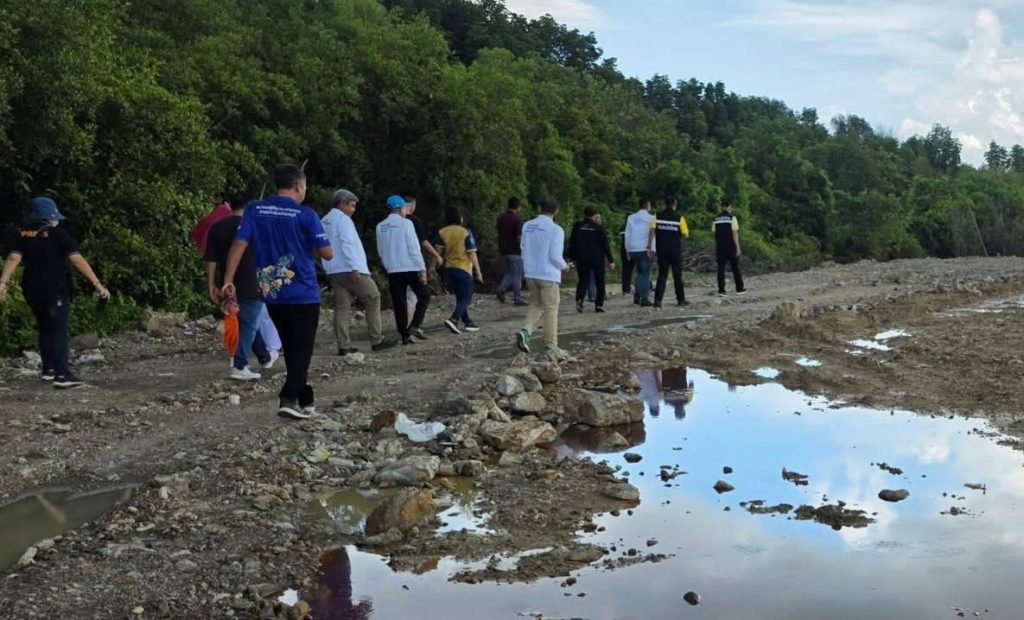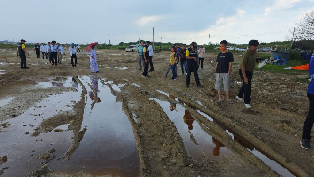 ต่อมาผู้ร่วมประชุมทั้งหมดได้ลงพื้นที่ไปตรวจสอบเรื่องกลิ่นเหม็น และนำน้ำไปตรวจสอบหาค่ากรดด่าง โดยเบื้องต้นวัดค่าน้ำเสีย ค่ามาตรฐาน 5.5-5.9 แต่ที่วัดได้คือความเป็นกรดอ่อน 4.2 คือเกินค่ามาตรฐาน จะมีผลกระทบต่อระบบนิเวศ สัตว์น้ำสอบถามนางสมศรี พรหมมา ชาวบ้านข้างเคียงที่ถมดิน เปิดเผยว่า ตนได้รับความเดือดร้อนมา 6 เดือนแล้ว ทางเจ้าของที่ดินไม่เคยมาพูดคุยกับตนเลย ผลกระทบที่เกิดคือ ต้นไม้ตาย มีกลิ่นเหม็นรุนแรงมาก จนตนเจ็บหน้าอก บริเวณที่น้ำเสียไหลมา บริเวณนี้จะมี 5-6 หลัง ตนไม่ได้อยากได้อะไรมากขอแค่ให้ดูดน้ำเสียนี้ออกไปให้หมดแล้วนำดินมากลบ ตนไม่อยากให้ถึงขั้นนี้แต่ตนทนไม่ไหวเพราะเป็นเวลาหลายเดือนแล้วทางด้านนายพรประเสริฐ เจริญสุข