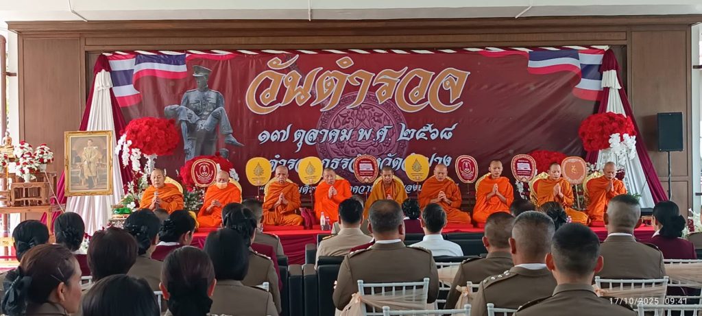 เมื่อเวลา 10.45 น.วันที่ 17 ต.ค.2568 ที่ จ.ลำปาง ผู้สื่อข่าวรายงานว่า ณ ตำรวจภูธรจังหวัดลำปาง (แห่งใหม่) อ.เมืองลำปาง มีการจัดงานวันตำรวจประจำปี 2568 โดยมีพล.ต.ต.ภูมิปัญญ์ญา นวตระกูลพิสุทธิ์ ผบก.ภ.จว.ลำปาง และคุณศิวิไล นวตระกูลพิสุทธิ์ประธานแม่บ้านตำรวจภูธรจังหวัดลำปาง พร้อมด้วย พ.อ.กฤษฎา พันธ์เกษม พ.ต.อ.คมสันต์ สอาดล้วน พ.ต.อ.ศักดิ์ศรี ยะปาละ รอง ผบก.ภ.จว.ลำปาง พ.ต.อ.ไพโรจน์ ทองขาว ผกก.กก.สส.ภ.จว.ลำปาง และตำรวจในสังกัด เข้าร่วมกิจกรรม