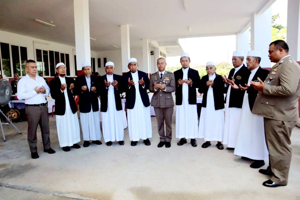 เมื่อเวลา 09.00 น.วันนี้ (17 ต.ค.68) ณ กองบังคับการตำรวจภูธร จ.นราธิวาส ต.โคกเคียน อ.เมือง จ.นราธิวาส ได้จัดให้มีพิธีเนื่องในวันตำรวจ ประจำปี 2568 โดย พลตำรวจตรี ประยงค์ โคตรสาขา ผู้บังคับการตำรวจภูธรจังหวัดนราธิวาส เป็นประธาน พร้อมด้วย คณะกรรมการตรวจสอบและติดตามการบริหารงานตำรวจจังหวัดนราธิวาส, รองผู้บังคับการตำรวจภูธรจังหวัดนราธิวาส, ข้าราชการตำรวจในสังกัด รวมถึงประธานแม่บ้านตำรวจภูธรจังหวัดนราธิวาส เข้าร่วมพิธีทางสงฆ์และผู้นำศาสนาร่วมกันละหมาดและดุอาร์
