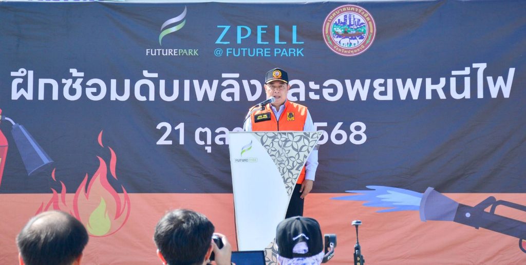เมื่อเวลา 9.30 น. ณ ศูนย์การค้าฟิวเจอร์พาร์ค รังสิต นายเอกวิทย์ มีเพียร ผู้ว่าราชการจังหวัดปทุมธานี เป็นประธานการฝึกซ้อมการป้องกันและระงับอัคคีภัยในสถานประกอบการประจำปี 2568