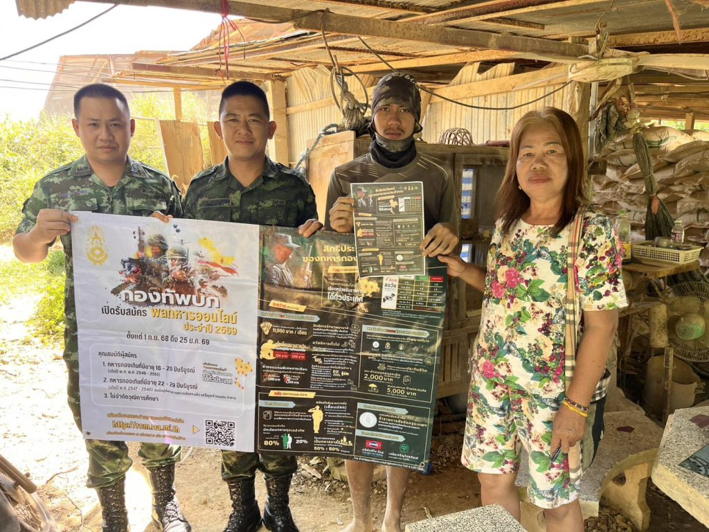 เมื่อวันที่ 22 ต.ค.2568 ที่ จ.ลำปาง ผู้สื่อข่าวรายงานว่า พล.ต.กวิน ยาวิชัย ผบ.มทบ.32 มอบหมายให้ ร.อ. อนุรักษ์ มังคะวงศ์ หน.ชุดปฎิบัติการกิจการพลเรือน มทบ.32 (3) ศูนย์การฝึกนักศึกษาวิชาทหาร มทบ.32 ลงพื้นที่ประชาสัมพันธ์การรับสมัครทหารกองเกินเข้ารับราชการทหารกองประจำการ โดยวิธีร้องขอ(กรณีพิเศษ)ด้วยระบบออนไลน์ ประจำปี 2569 (พลทหารออนไลน์)ในพื้นที่ ต.ป่าตัน และ ต.น้ำโจ้ อ.แม่ทะ