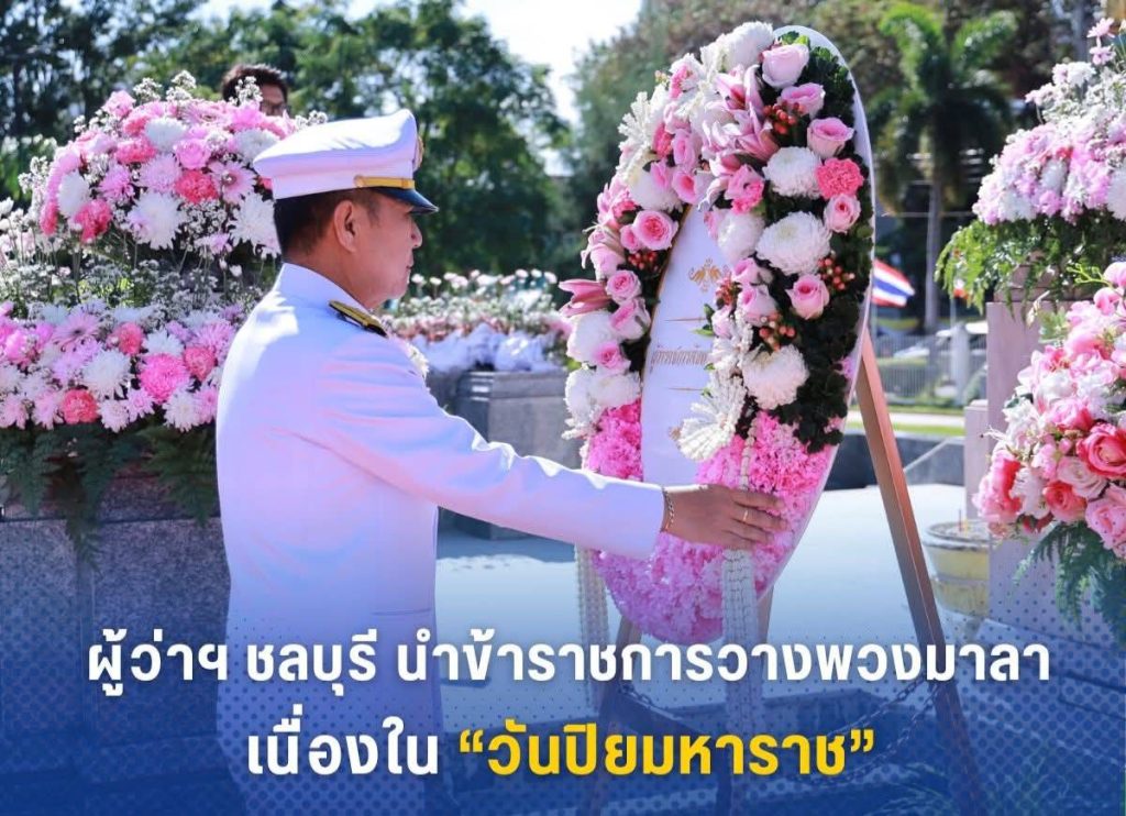”โดยมีนางสุพิณญา นิรามัยวงศ์นายกเหล่ากาชาดจังหวัดชลบุรีนายอำนาจเจริญศรี นายชัยพรแพภิรมย์รัตน์นายอดิเรกอุ่นโอสถ และนายพงศ์ธสิษฐ์ ปิจนันท์รองผู้ว่าราชการจังหวัดชลบุรีร่วมด้วยข้าราชการตุลาการทหาร ตำรวจหัวหน้าส่วนราชการจังหวัดชลบุรีหน่วยงานภาครัฐและภาคเอกชนพร้อมใจกันถวายราชสักการะเพื่อน้อมรำลึกถึงพระมหากรุณาธิคุณของพระบาทสมเด็จพระจุลจอมเกล้าเจ้าอยู่หัวที่ทรงพัฒนานำพาความเจริญมาสู่ประเทศ