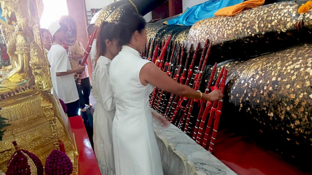 ด้านคุณรัญวรัชญ์ นนท์ธนาจิรศิริ เจ้าของร้านสปา จ.นนทบุรี เล่าว่าที่ผ่านมาได้มาอาบน้ำว่าน ที่วัดดงเสลา กลับไปแล้วโชคดี มีโชคลาภ ถูกรางวัลรับโชคมากว่า 20 ครั้งแล้ว และที่สำคัญธุรกิจ การงาน เจริญรุ่งเรือง วันนี้ได้มาร่วมงานบุญแห่กฐินดาบ ถวายดาบหลวงพ่อขุนด่าน วัดดงเสลา เป็นปีแรก รู้สึกดีใจ อิ่มบุญ ซึ่งได้เช่าดาบร่วมแห่กฐินดาบ ถวายหลวงพ่อขุนด่าน 10 เล่ม และได้ลุ้นโชค รางวัลลอตเตอรี่ที่ติดอยู่ที่ดาบ 10 ใบอีกด้วย แต่ยังไม่ขอแกะซองลอตเตอรี่ออกมาดูเลข เนื่องจากรอลุ้นตอนหวยออกงวดวันที่ 1 พ.ย.นี้ก่อน จึงจะแกะซองลอตเตอรี่ที่ติดมากับดาบออกมาลุ้นตรวจรางวัล