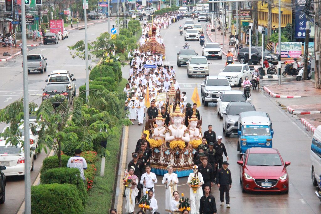 “โครงการส่งเสริมและจรรโลงพระพุทธศาสนา ส่งเสริมศิลปะและวัฒนธรรม” โดยเคลื่อนขบวนจากโรงแรมวังใต้ไปตามถนนศรีวิชัย ผ่านหมวดทางหลวงสุราษฎร์ธานี โรงพยาบาลสุราษฎร์ธานี สิ้นสุดที่วัดกลางใหม่ รวมระยะทางประมาณ 2 กิโลเมตร มีผู้เข้าร่วมกว่า 1,000 คน