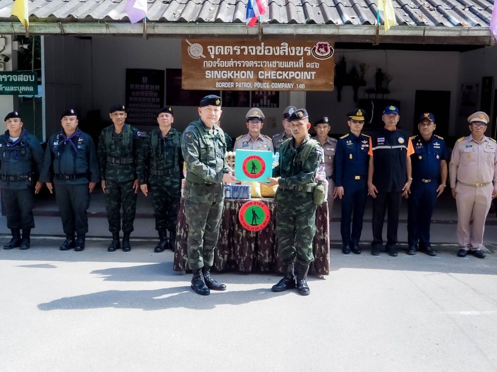 พร้อมทั้งยังได้รับฟังการบรรยายสรุป พบปะให้โอวาท และมอบสิ่งของบำรุงขวัญให้กับกำลังพล เพื่อเป็นขวัญกำลังใจในการปฏิบัติงาน ณ หน่วยเฉพาะกิจจงอางศึก กองกำลังสุรสีห์ กองพลทหารราบที่ 19 ต.เกาะหลัก อ.เมือง จ.ประจวบคีรีขันธ์ จากนั้นได้เดินทางไปที่จุดตรวจร่วมห้วยยาง ต.ห้วยยาง อ.ทับสะแก จ.ประจวบฯ เพื่อรับฟังการบรรยายสรุป และพบปะส่วนราชการในพื้นที่ พร้อมทั้งมอบสิ่งของบำรุงขวัญให้กับเจ้าหน้าที่ประจำจุดตรวจ