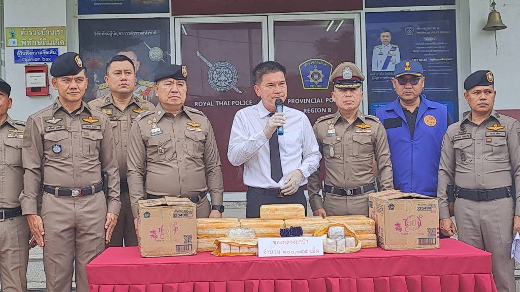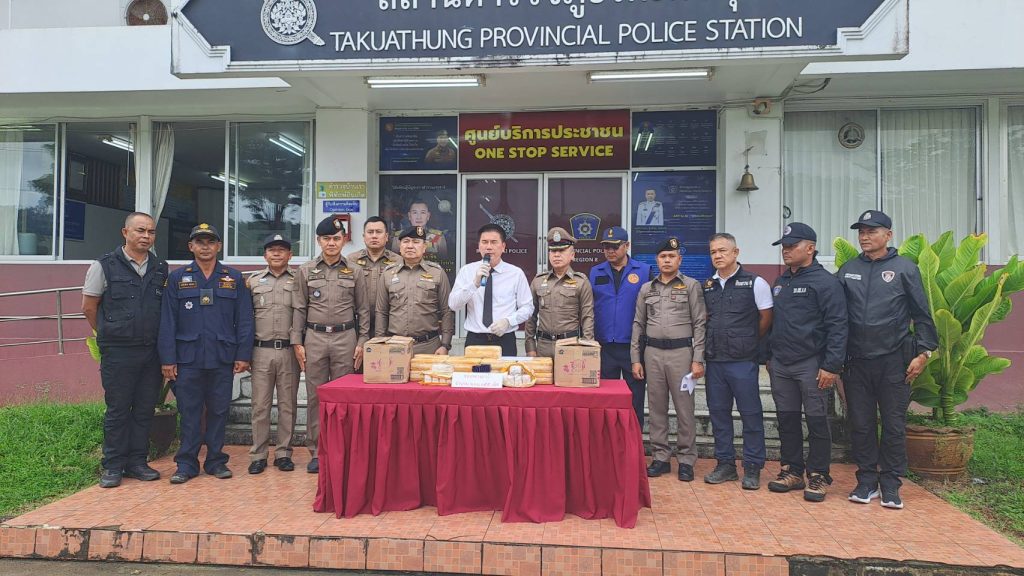 เมื่อวันที่ 29 ตุลาคม 2568 ที่สภ.ตะกั่วทุ่ง อ.ตะกั่วทุ่ง จ.พังงา นายไพรัตน์ เพชรยวน ผู้ว่าราชการจังหวัดพังงา พร้อมด้วย พล.ต.ต.ชัยเกียรติ วิริยสถิตย์กุล ผบก ภ.จว.พังงา นายวิเชฐ สูยะนันท์ นายอำเภอตะกั่วทุ่ง และพ.ต.อ.ประกอบ บุญขวัญ ผกก.สภ.ตะกั่วทุ่งร่วมกันแถลงผลการจับกุมยาเสพติดรายสำคัญ