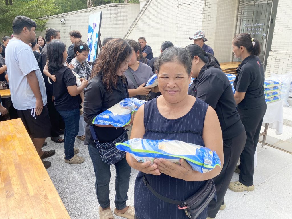โดยจุดแรกบริเวณหน้าศาลาราชการุณย์จะมอบให้กับประชาชนในพื้นที่จำนวน 500 ถุง จุดที่สองมอบให้กับเจ้าหน้าที่ทหาร ชุดควบคุมทหารพรานนาวิกโยธินที่ 3 ที่เสียสละดูแลผืนแผ่นดินไทยตลอดแนวเทือกเขาบรรทัด จำนวน 500 ถุง และจุดที่สามได้ขอความอนุเคราะห์ นายเชิดศักดิ์ ชุ่มนาเสียว นายอำเภอคลองใหญ่ ช่วยส่งมอบข้าวสารจำนวน 1,000 ถุง ตอนช่วงบ่าย 14.00น.ที่หอประชุมเฉลิมพระเกียรติ 88 พรรษาของคลองใหญ่ โดยมีคุณธิติพร จุติมานนท์ หรือ บอย เอ็นเตอร์เทน มาลงพื้นที่พบปะพูดคุยกับหน่วยงานท้องถิ่นและกิ่งกาชาดอําเภอคลองใหญ่ให้กับผู้ใหญ่บ้าน ผู้นําท้องถิ่น เพื่อนําข้าวสารไปมอบให้กับกลุ่มเปราะบาง ในเขตพื้นที่อําเภอคลองใหญ่ 20 หมู่บ้าน หมู่ละ 50 ถุง เป็น