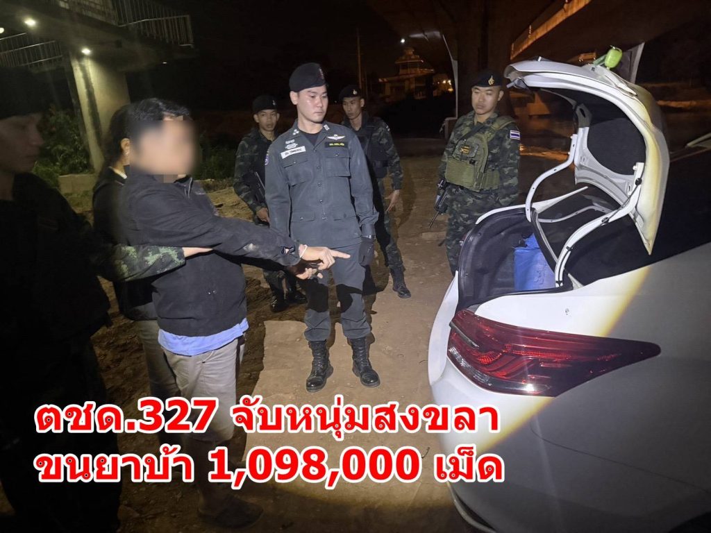ตชด.327 จับหนุ่มสงขลา ขนยาบ้า 1,098,000 เม็ด