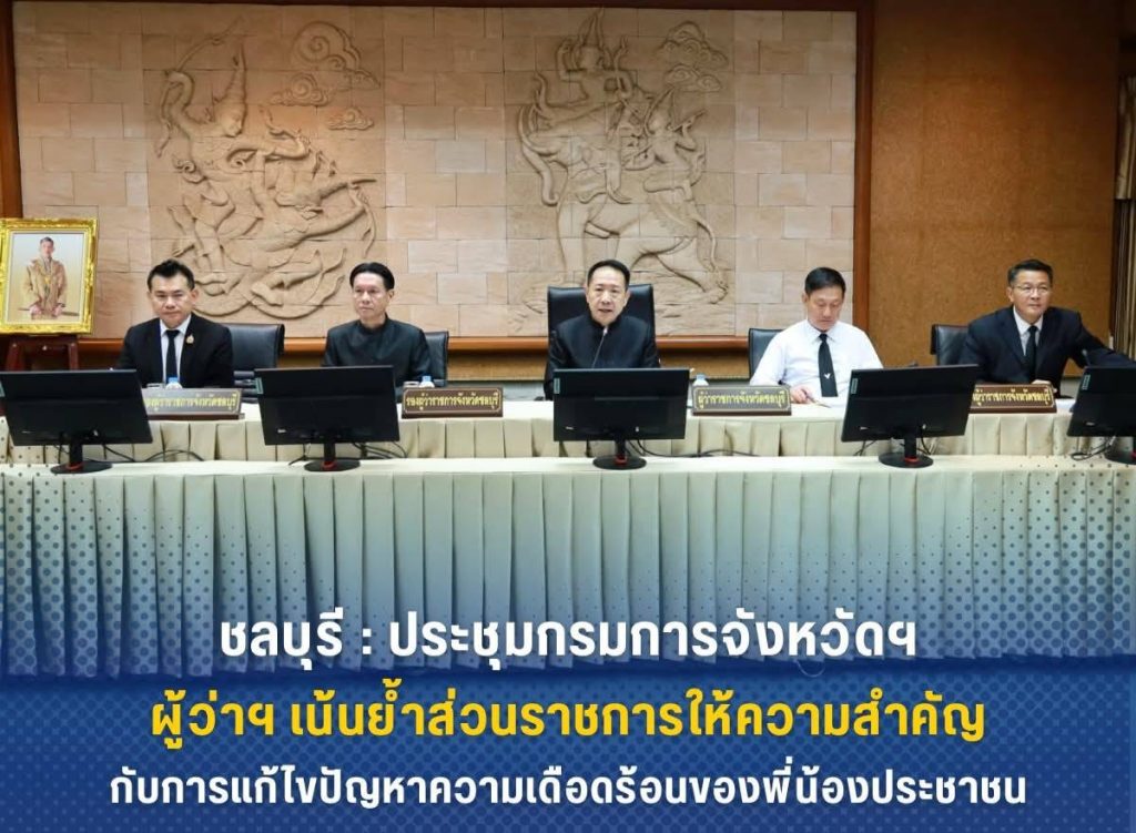 ซึ่งเป็นแนวทางให้ทุกส่วนราชการดำเนินงานไปในทิศทางเดียวกัน พร้อมบูรณาการการทำงานร่วมกันเพื่อให้เกิดประสิทธิภาพลดขั้นตอนการปฏิบัติงานและเน้นย้ำให้ทุกภาคส่วนให้ความสำคัญกับการแก้ไขปัญหาความเดือดร้อนของประชาชนให้เร็วที่สุดนอกจากนี้ผู้ว่าราชการจังหวัดชลบุรี - ได้กล่าวเพิ่มเติมว่าระหว่างวันที่ 9 – 20 ธันวาคม 2568จังหวัดชลบุรีจะร่วมเป็นเจ้าภาพจัดการแข่งขันกีฬาซีเกมส์ครั้งที่ 33 ซึ่งจะมีทัพนักกีฬาผู้ฝึกสอน ผู้ตัดสินและผู้เกี่ยวข้องเดินทางเข้ามาในพื้นที่เป็นจำนวนมากขณะนี้มีการเตรียมความพร้อมทั้งในส่วนของสนามแข่งขัน สถานที่รองรับการประชาสัมพันธ์งาน และสิ่งอำนวยความสะดวกต่าง ๆ