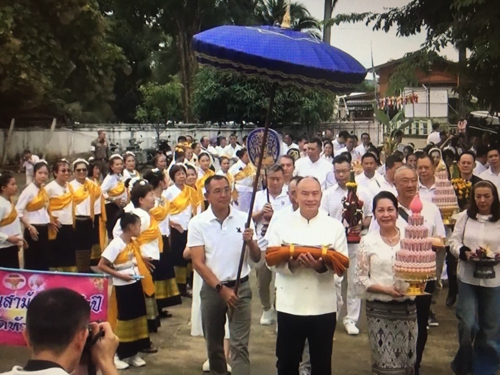 นำโดยพระอธิการ ชาญชัย กตฺตวีโร เจ้าอาวาสวัดร้องอ้อ จังหวัดเชียงใหม่ พร้อม นาย สว่าง ธาตุอินทร์จันทร์ ประธานเครือข่ายกองทุนแม่ของแผ่นดินจังหวัดเชียงใหม่ และ 8 จังหวัดภาคเหนือตอนบน และยังมีคณะศรัทธาวัดหัวฝาย ตำบลนาครัว อำเภอแม่ทะ จังหวัดลำปาง ร่วมขบวนแห่ทอดกฐิน เดินวนพระวิหาร 3 รอบ ก่อนขึ้นนำไปถวาย และทำพิธี บนศาลาการเปรียญทรงล้านนา โดยมีพลตำรวจเอก ประจวบ วงศ์สุข พร้อมภริยา เป็นประธานจุดธูปเทียนบูชาพระรัตนตรัย เจ้าภาพถวาย ตาลปัตรกฐินพร้อมประเคนขันขอศีล