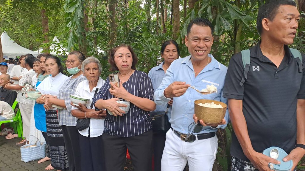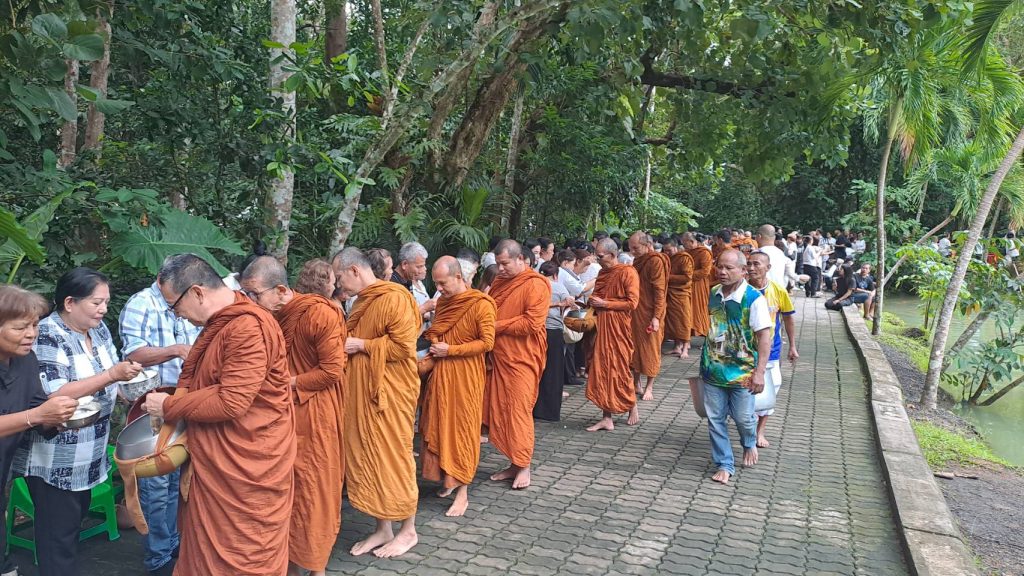 ผู้สื่อข่าวรายงานว่า เมื่อวันที่ 3 พฤศจิกายน 2568 ที่วัดป่าพุทธอุทยานเฉลิมพระเกียรติ (วัดเขาม่วง) ต.บางเตย อ.เมืองพังงา มีพุทธศาสนิกชนจำนวนมากหลั่งไหลเข้ามาร่วมงานทอดกฐินสามัคคี ประจำปี 2568 เพื่อจัดซื้ออุปกรณ์ทางการศึกษาให้กับโรงเรียนเกียรติประชา บนเกาะพระทองและซื้ออุปกรณ์ทางการแพทย์ให้โรงพยาบาลในพื้นที่จังหวัดพังงาและจังหวัดตรัง โดยทางพระครูสุกิตติโสภณ อัตตสาโร (พระอาจารย์เขียว) เจ้าอาวาสวัดเขาม่วง ซึ่งเป็นพระสงฆ์สายวิปัสนาที่ขึ้นชื่อในเรื่องของการปฏิบัติดี ปฏิบัติชอบ ได้ร่วมกับพุทธศาสนิกชน