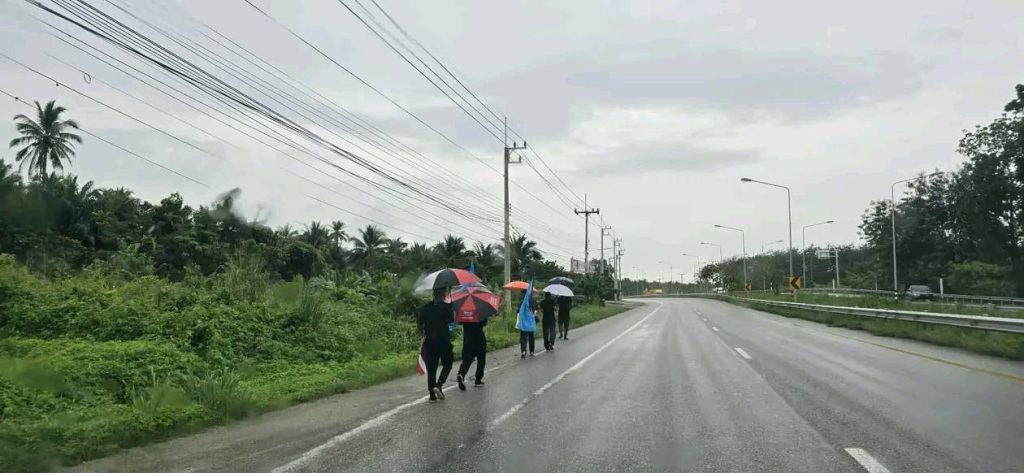 ด้านเจ้าหน้าที่องค์การบริหารส่วนตำบลทองมงคล กล่าวว่า ทางอบต.ได้จัดเตรียมสถานที่พักค้างแรมและอาหารสำหรับกลุ่มผู้เดินเท้า พร้อมสนับสนุนอุปกรณ์จำเป็นและประสานอาสาสมัครในพื้นที่ดูแลความปลอดภัยตลอดช่วงการพักในเขตตำบลทองมงคล