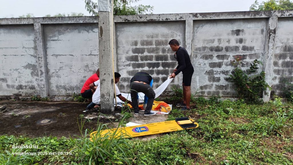 เมื่อวันที่ 4 พ.ย. 2568 เวลาประมาณ 08.00 น. ร.ต.อ.องอาจ มะโนบาล รองสารวัตร(สอบสวน) ฯ พนักงานสอบสวน เวร ได้รับแจ้งจากศูนย์วิทยุฯ ว่า มีเหตุมีคนนอนเสียชีวิตภายในบริเวณโรงงานทอผ้าบ้านแซะซอ ม.4 ต.สนวน อ.ห้วยราช จ.บุรีรัมย์ จึงรุดตรวจสอบพร้อมหน่วยกู้ภัยสว่างจรรยาธรรมจุดห้วยราช