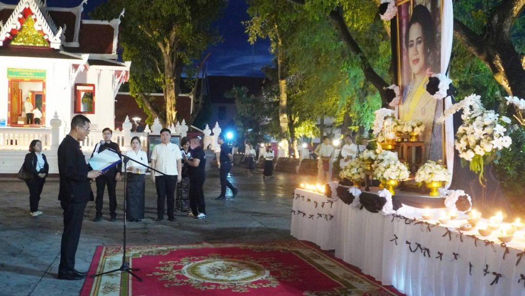 พร้อมด้วยนางสุดารัตน์ แววบัณฑิต นายกเหล่ากาชาดจังหวัดลำปาง พร้อมด้วยหัวหน้าส่วนราชการ และพสกนิกรชาวลำปาง ร่วมถวายความอาลัย และยืนสงบนิ่งเป็นเวลา 93 วินาที เพื่อน้อมรำลึกในพระมหากรุณาธิคุณของสมเด็จพระนางเจ้าสิริกิติ์ พระบรมราชินีนาถ พระบรมราชชนนีพันปีหลวง