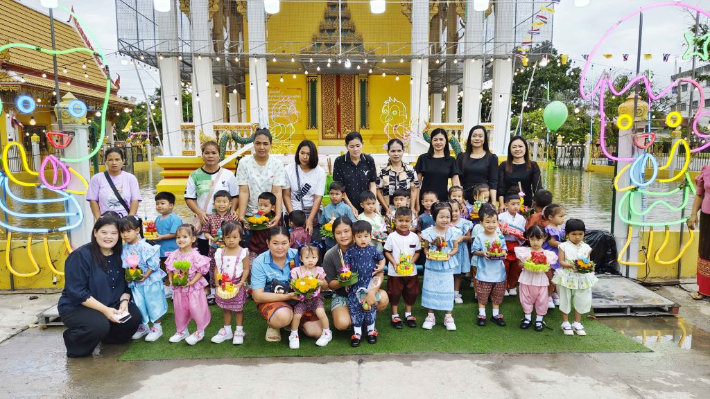 ได้จัดถ่ายรูปเก็บภาพที่สวยงามไว้เป็นที่ระลึก เด็กบางคนไม่ชอบถ่ายรูปก็ออกอาการงอแง แต่ก็น่ารัก สุดท้ายหนูๆ ก็ได้ลอยกระทงกันอย่างสมใจ ซึ่งกระทงที่น้องหนูนำมาลอยเป็นกระทงขนมปัง หลากหลายรูปแบบ