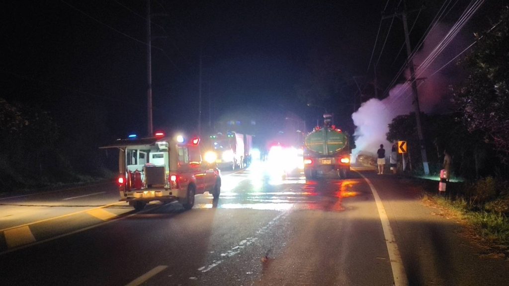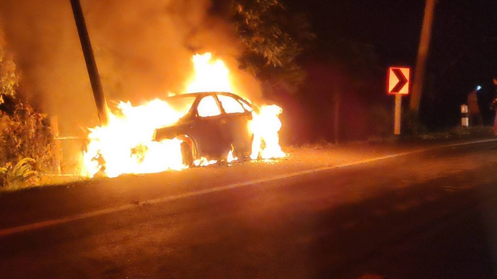 ที่เกิดเหตุพบไฟกำลังลุกไหม้ รถเก๋ง ยี้ห้อเชฟโรเลต รุ่น Optra สีเทา ไม่ติดแผ่นป้ายทะเบียน เจ้าหน้าที่จึงปิดกั้นการจราจร เพื่อให้รถดับเพลิงของ อบต.ยายแย้มวัฒนา ได้ฉีดน้ำสกัดเจ้าหน้าที่ใช้เวลาประมาณ 30 นาที จึงควบคุมเพลิงเอาไว้ได้ แต่รถเก๋งเสียหายหมดทั้งคัน